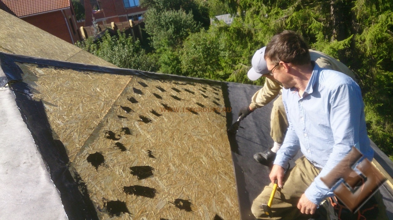 Профессионалы нашей компании выполнят пароизоляцию, вмонтируют гидроизоляцию, утеплят крышу. Следующим этапом работы будет крепление обрешётки и элементов контробрешётки.