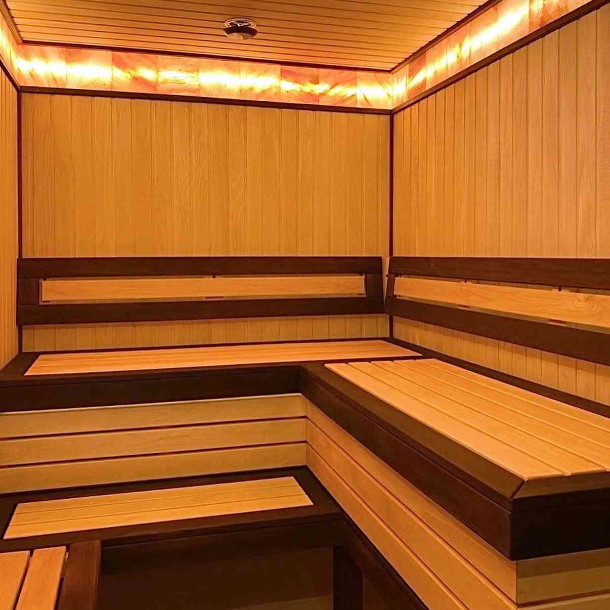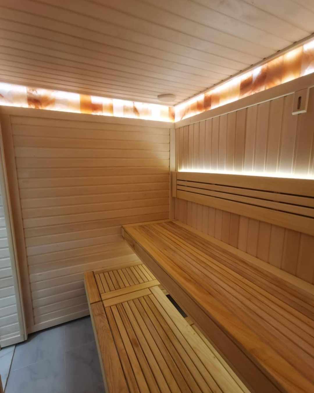 Это может быть кирпичная сауна или баня, внутри отделанная деревом;