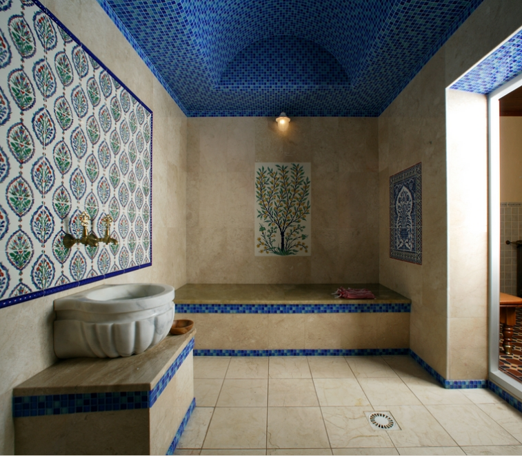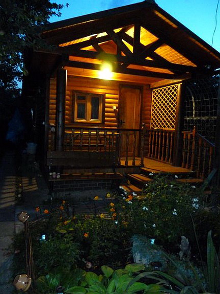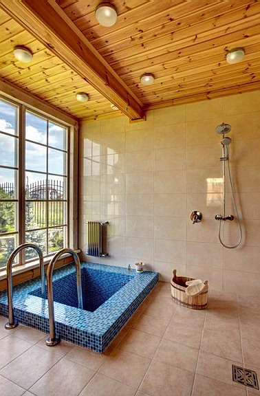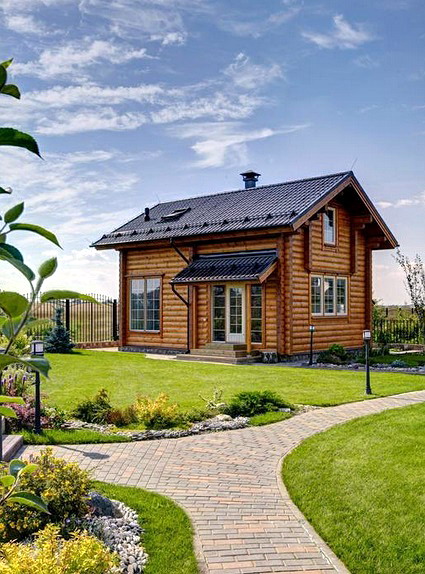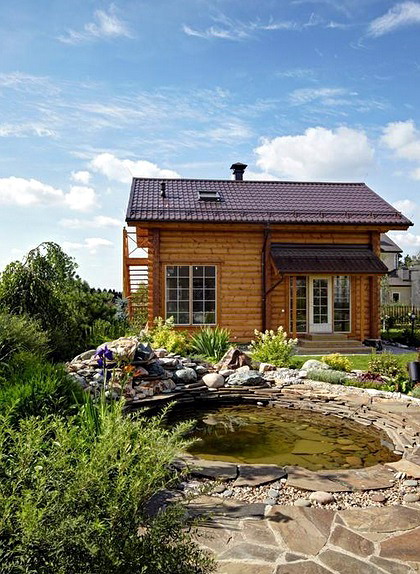 Есть и красивые вариации русской деревянной бани.